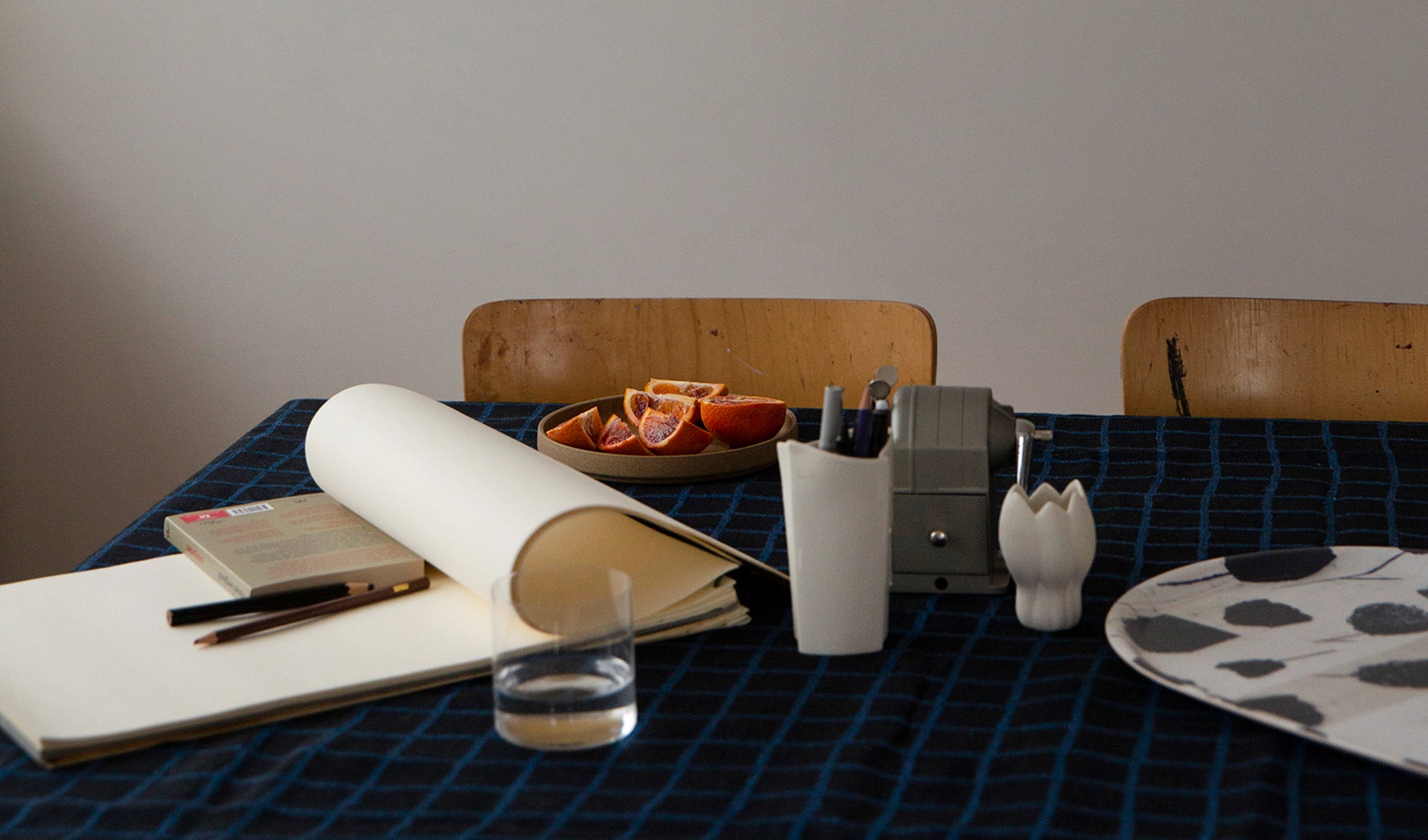 RUTIG JACQUARDVÄVD BORDSLÖPARE, SVART -