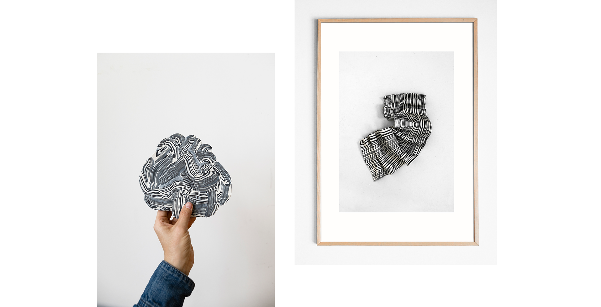 Denna teknik ger oändliga uttryck och möjligheter, och Frida använder den både för skulpturer och vardagsföremål. Hennes vackra mönster med färgade lerkombinationer har blivit posters för Fine Little Day.