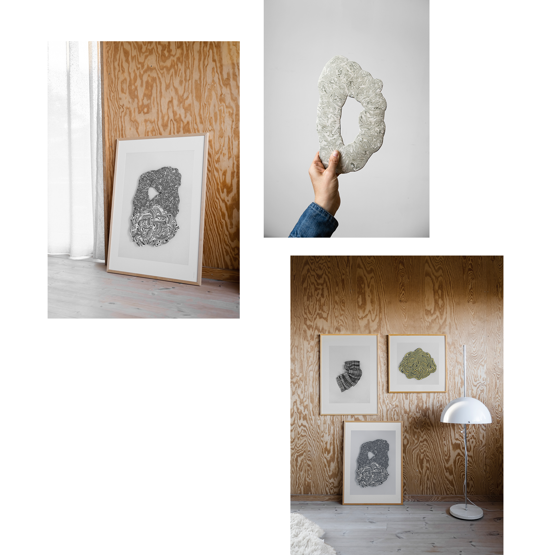 A: Jag tycker att det är spännande att mina skulpturer ändrar karaktär och blir till nya verk genom kameralinsen. Jag tycker att avtrycken står på egna ben som konstverk.