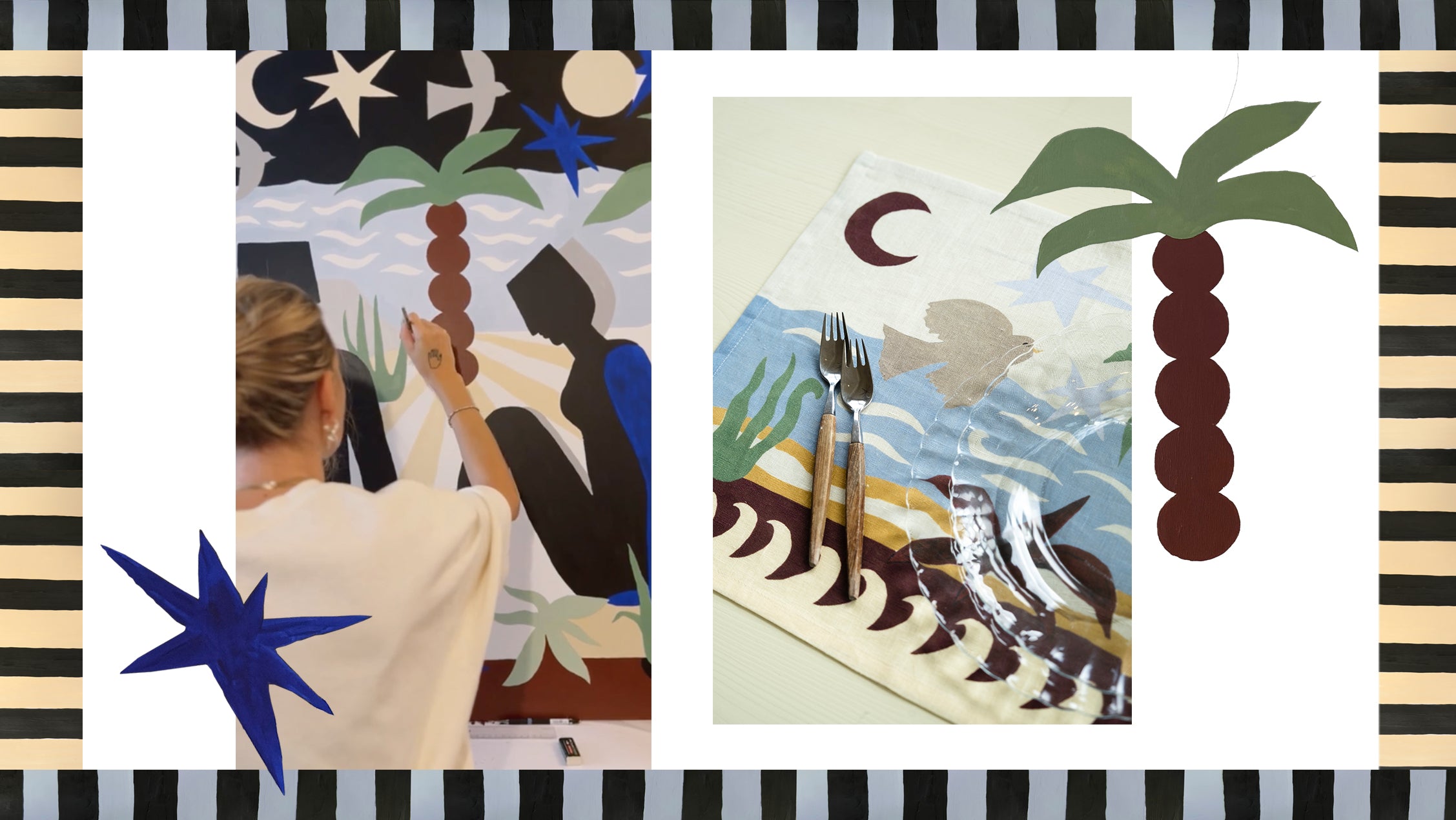 A: First, I need to make sure that the painting or pattern I want to use works well for the product, and especially for the material. The colors will also feel and look different depending on the material, so I would say it’s really important to me that product has high-quality materials. I’m good at visualizing everything I work with, and that helps me achieve the end result I want.