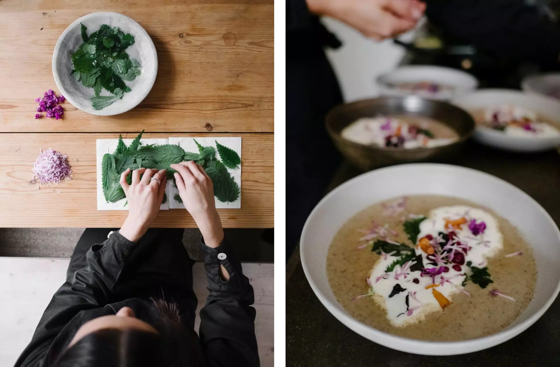 We had the luxury to experience some of Shalony's amazing gourmet dishes made from scratch with such care. For lunch we were served a mushroom soup with chanterelle, black trumpet and funnel chanterelle. This was topped with sour cream, fresh red clover, fried chanterelle pickled in nettle, milk thistle and ramson oil.
