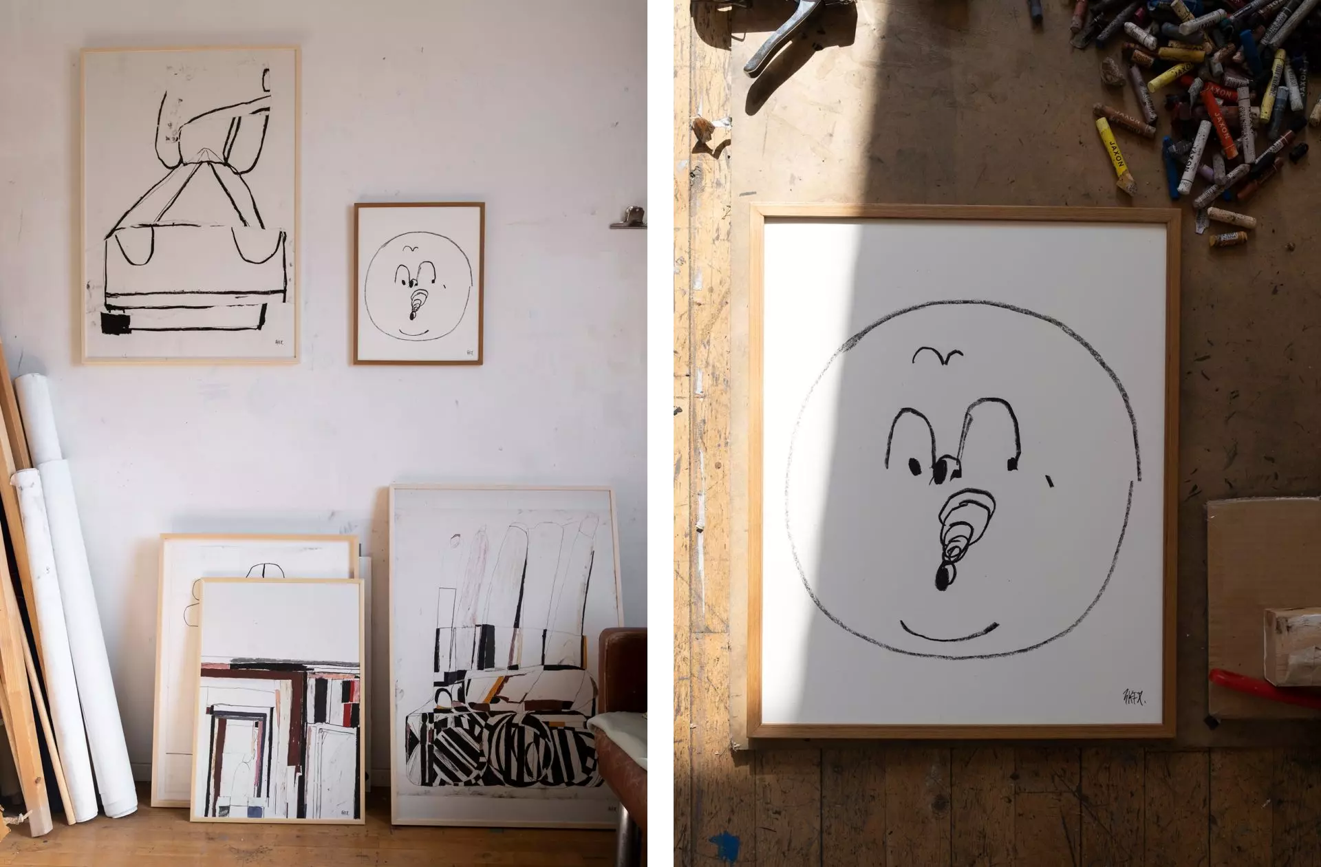 EKTA's work is liberating raw and playful, totally intuitive, unrefined yet balanced. With only a few outlined figures or colored silhouettes, he creates intriguing visuals. It's no secret that EKTA is driven by a willingness to take bold risks. When discussing his work, he emphasizes the importance of failure as a way of moving forward and finding a way around mind barriers that can occur when working. "Self sabotage" as a method. He is happy to invite the viewer into the process and often lets others decide when a work is finished. His art is energizing, just as he is. After a meeting with EKTA, everything feels possible.