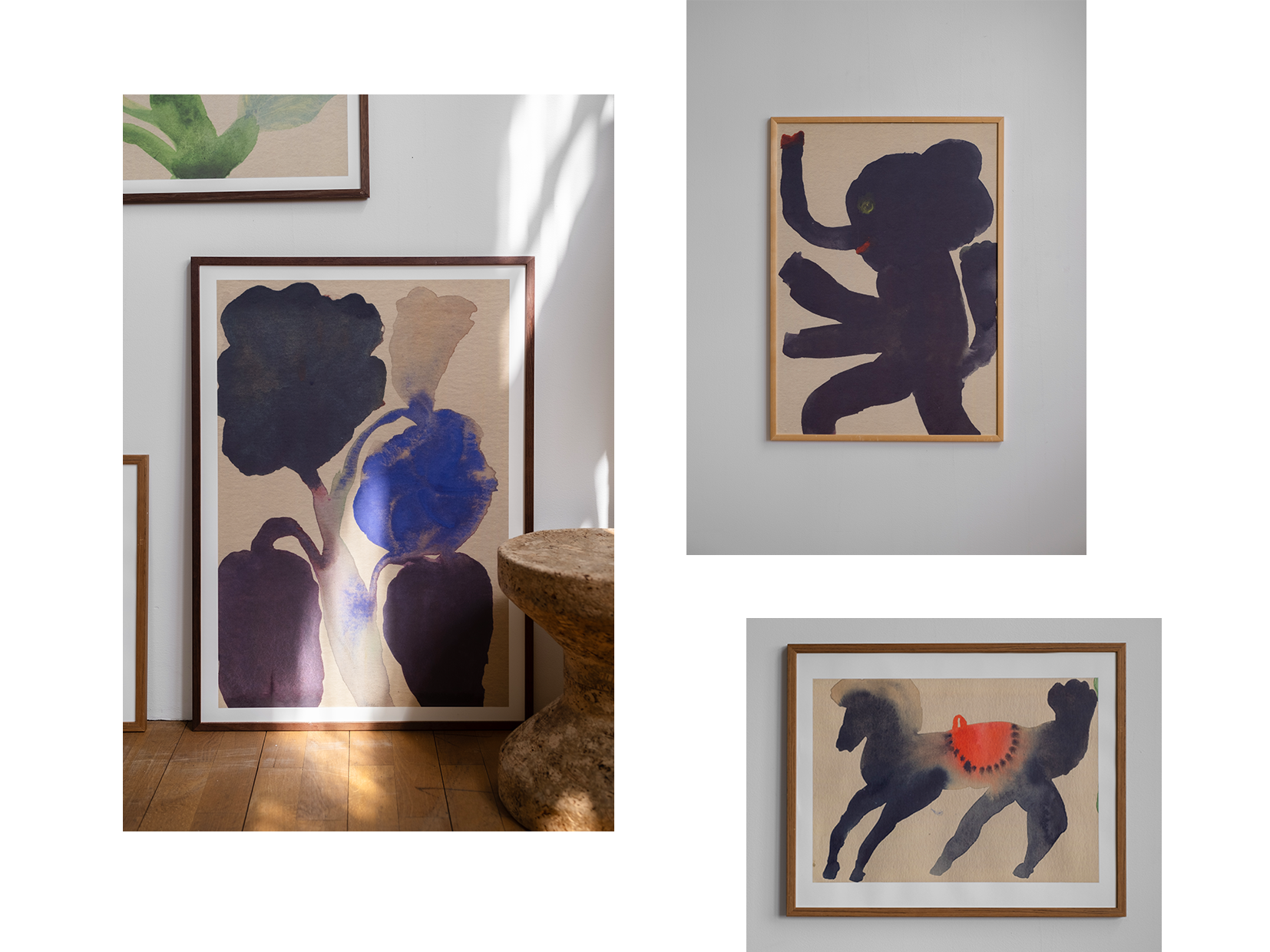 Like many people, Moira painted during her childhood but stopped when she left school. Years later, during her parental leave, she found inspiration again and began painting and drawing once more. Today, she paints animals, birds, and plants in an abstract yet figurative way. She works intuitively, letting the watery colors flow into each other on the paper.