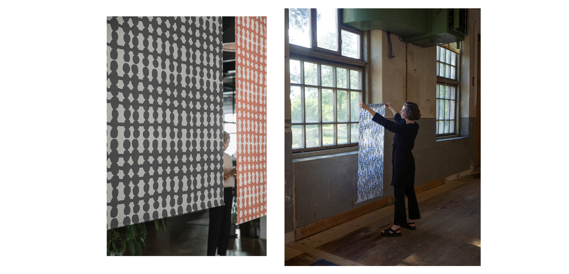Our patterns on roller shades in a new collaboration between Sandatex and Fine Little Day, launched fall 2022.