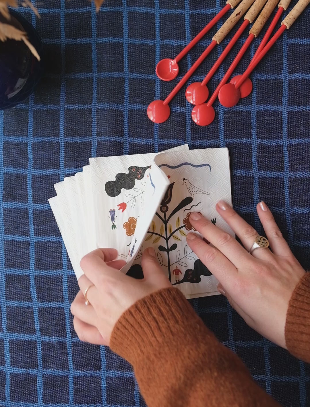 Greet your guests with beautiful napkins! These paper napkins with a decorative folk art motif by Elisabeth Dunker will easily become part of a wonderful table setting during Advent and Christmas.