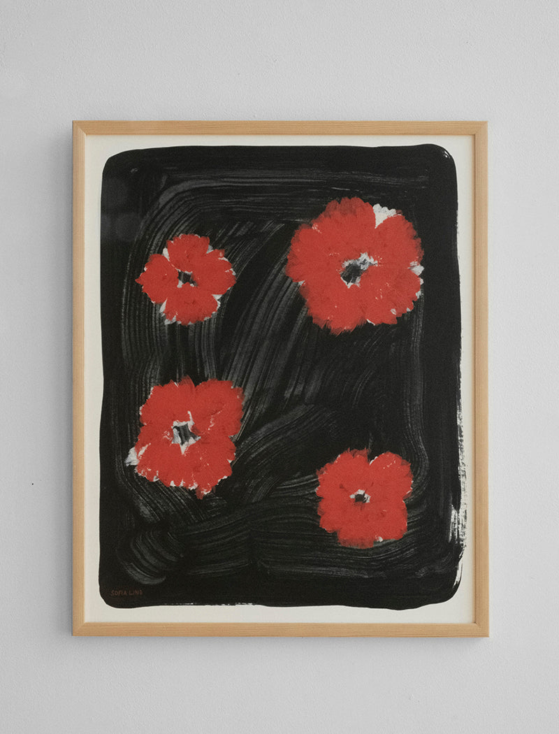 The flower Scarlet Pimpernel is part of a series of flower portraits by Sofia Lind for Fine Little Day. \n \nSofia Lind is a designer and artist from Gothenburg, Sweden. After studying at HDK – Academy of Design and Crafts and Konstfack she went to Stockholm where she’s active now. Her work is very much imbued with patterns. The digital part of her work comes in late i the process and she allows the materials/paintings be visible and present. \n \nDesign Sofia Lind for Fine Little Day \nSize 40x50 cm \nTechnique Offset print \nMaterial Off white FSC marked paper, 170gsm/0.37 Ib. \nMade in Sweden \nOther Delivered in a cardboard postal tube.