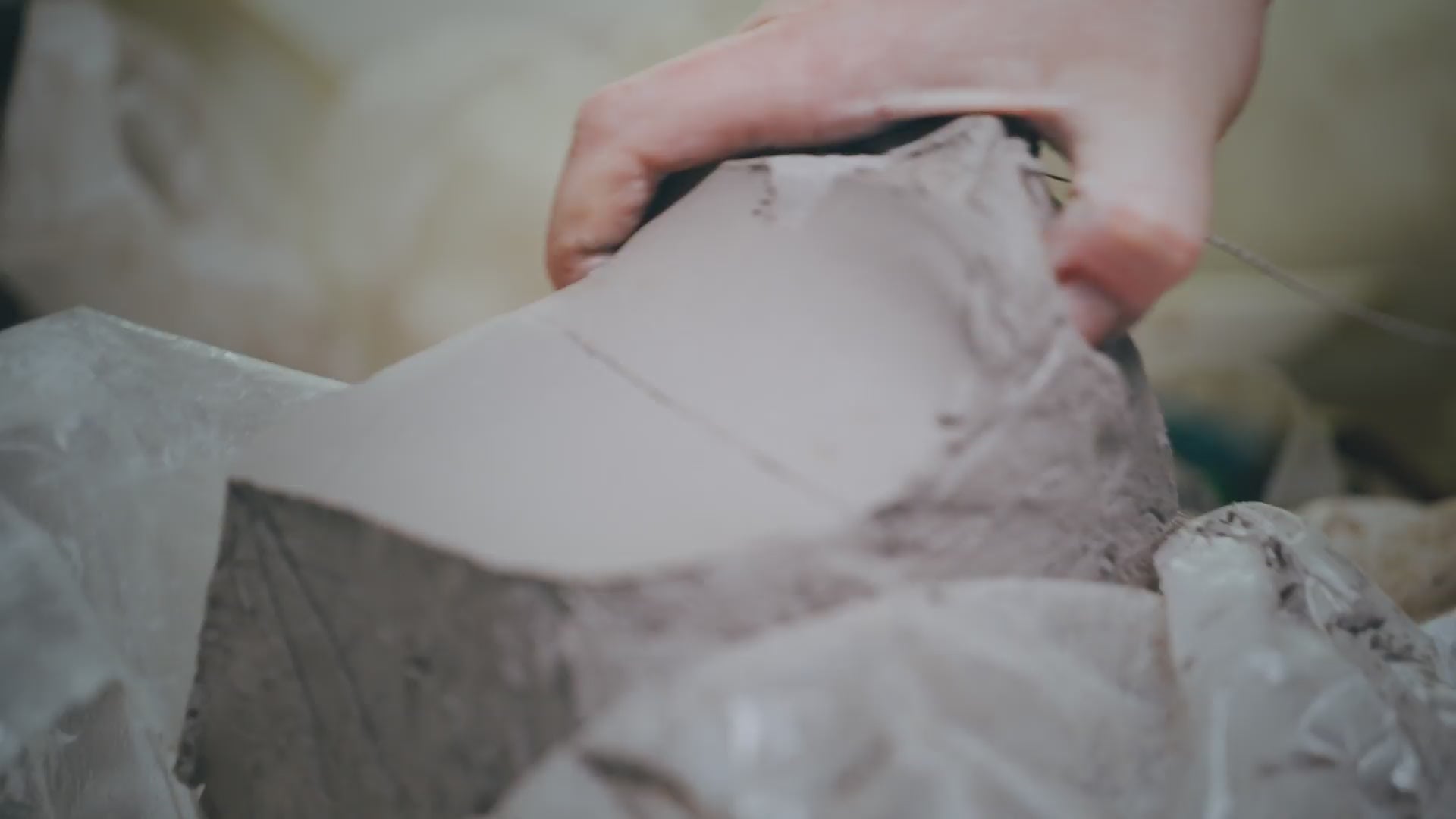 Tidigare har jag alltid vetat vad jag ska jobba med när jag sätter igång i ateljén men nu kom det smygandes på mig. Jag jobbar intensivt och snabbt. Lyssnar på rap eller ljudbok och köttar ut objekt. Ibland behåller jag dom eller så slänger jag och återanvänder leran. Stor skillnad för mig har varit att jag satte mig ner vid drejskivan och inkluderade det i arbetet. Jag är inte så intresserad av det perfekta och det funkar inte riktigt när en drejar, men lyckades lösa det genom att bygga och skulptera på de drejade godsen. Jag har inga kontrollbehov och det märks i den här utställningen, jag har testat mig fram och låtit saker växa fram. Det känns som att jag utvecklats åt ett kul håll, jag är förvånad.